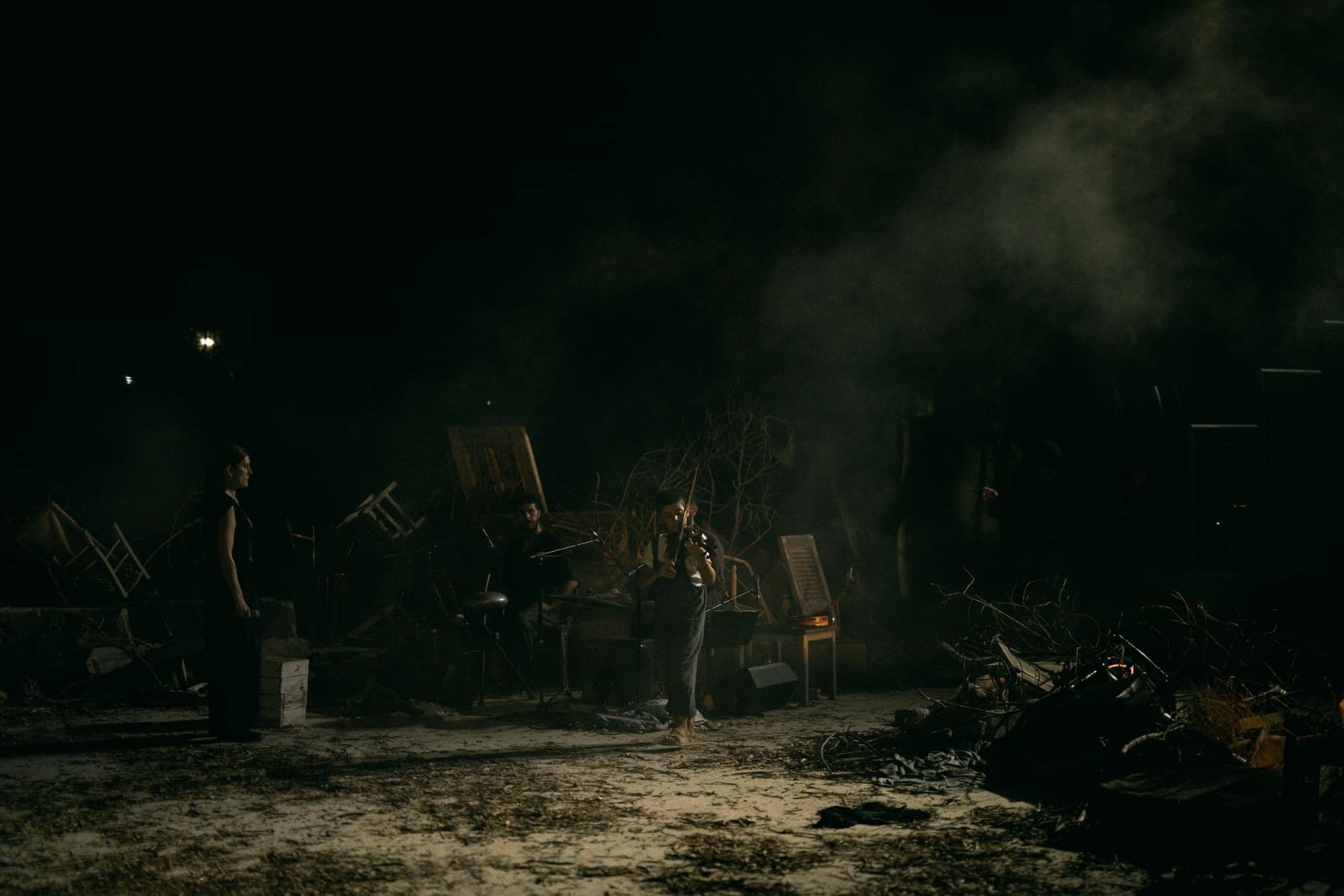 In terms of set design, we made the decision to create a “destroyed city” using materials from the so-called “Green points”, which would have both a previous, as well as a future life. All these materials were returned to the “Green points” on the day after our last performance. Furthermore, we avoided the use of unsustainable materials like acrylic paint or plastic. As far as costumes are concerned, some of them were made using fabric from costumes used in the past, while others were bought from local business. All costumes were washed in lower temperatures than usually.